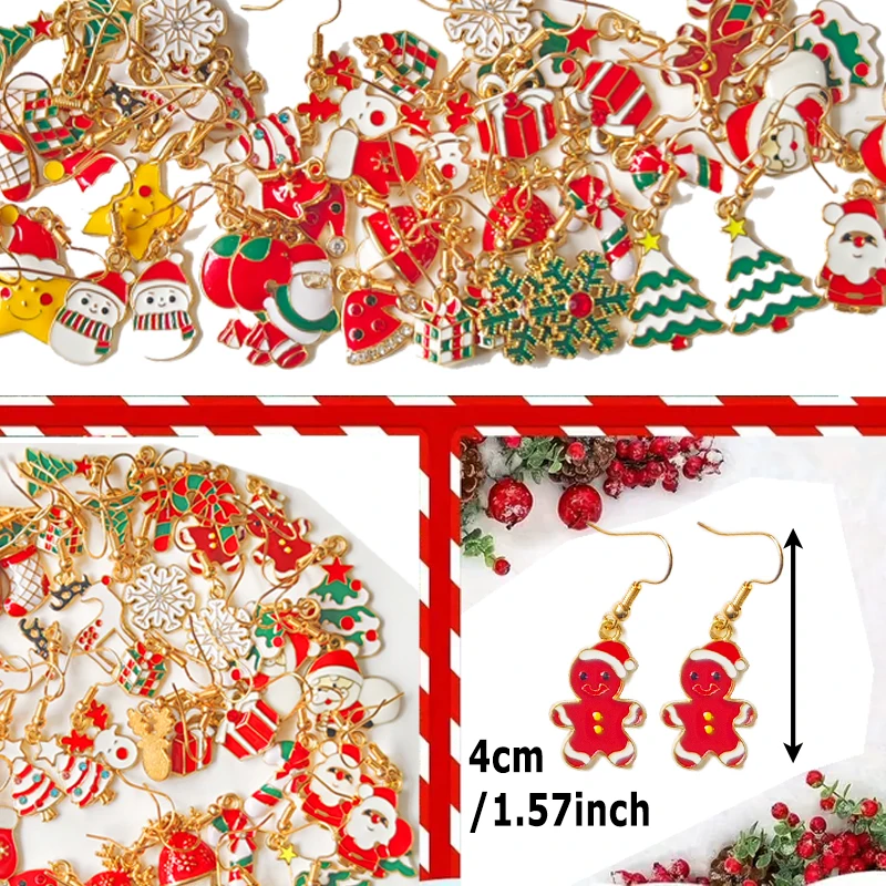 50PCS Christmas Cartoon Series Earrings, Made of Alloy with Drip Glaze Technique, Are Perfect for Christmas Surprise Gifts