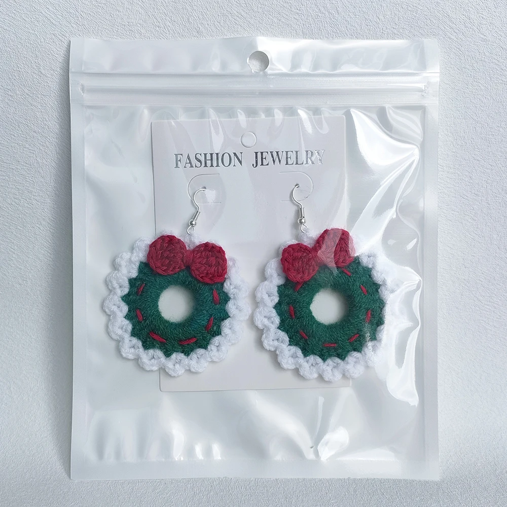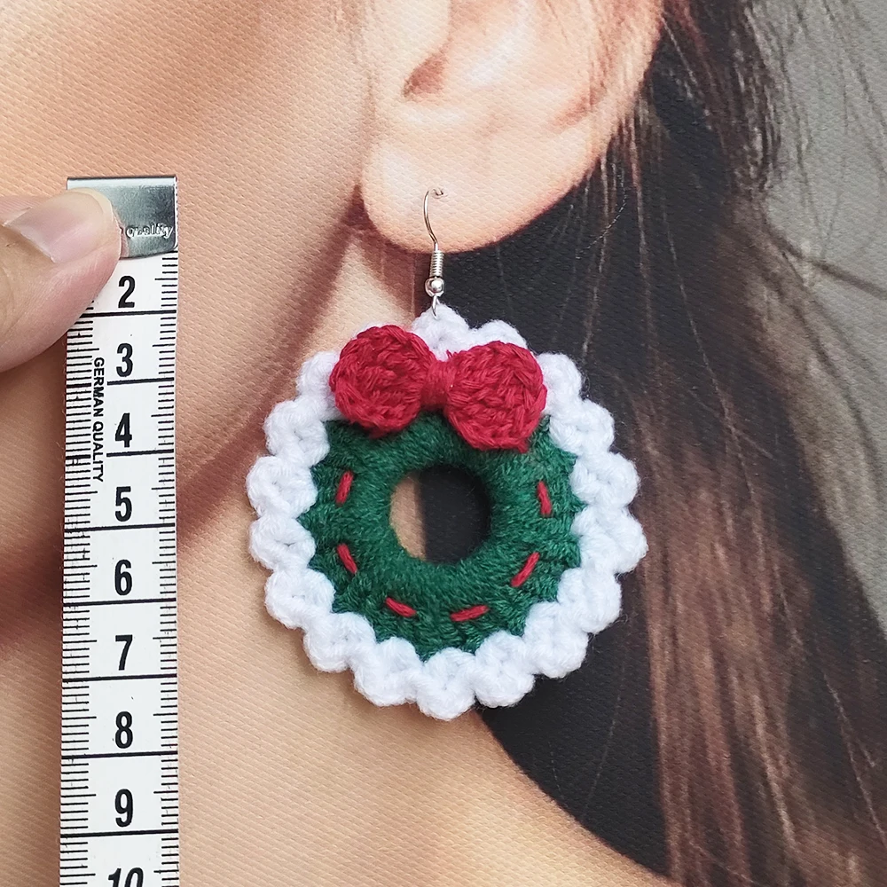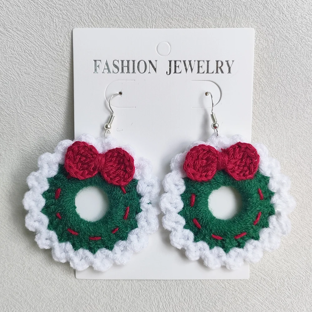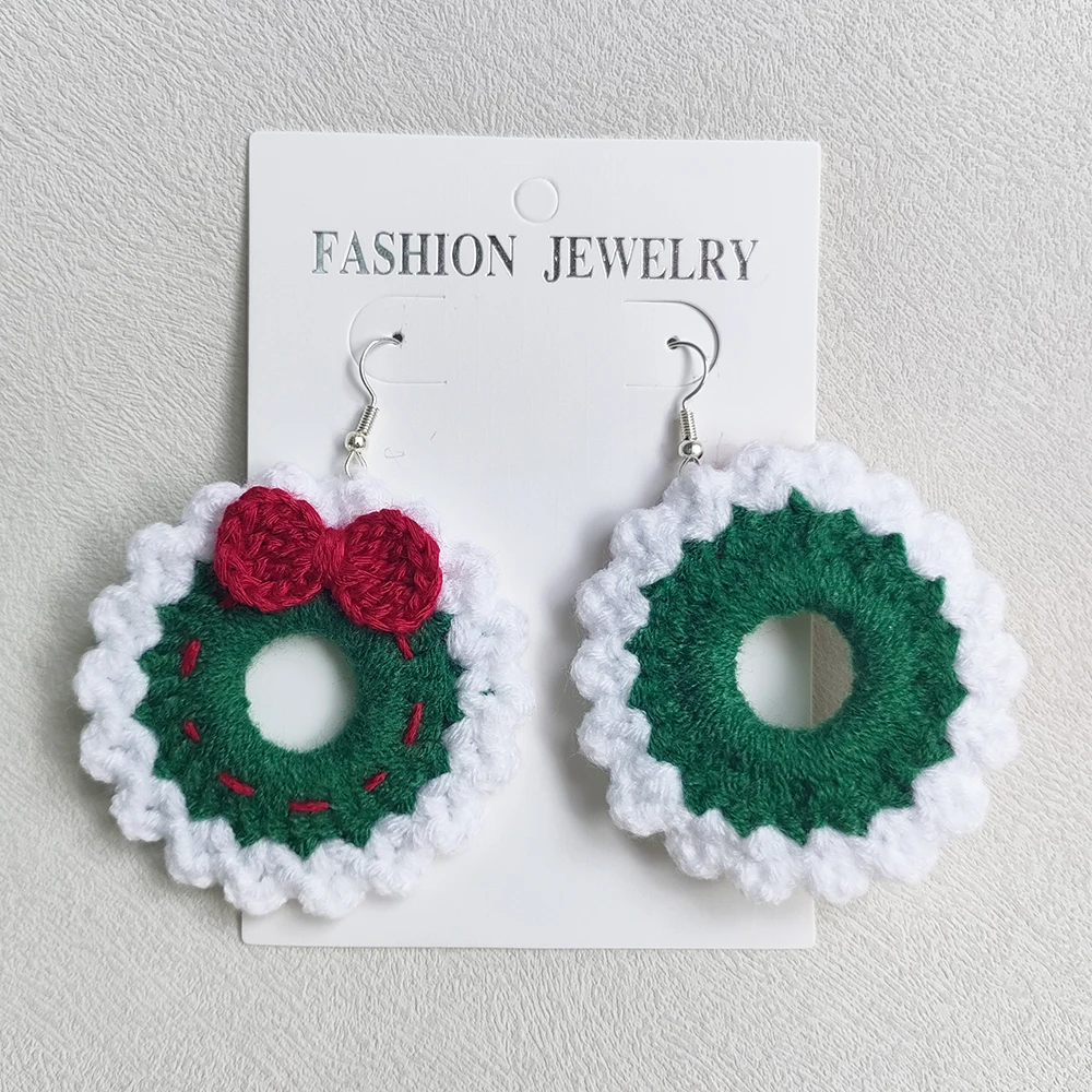 Crochet Fashion Merry Christmas Wreath Circle Hoop Earrings for Women Girls New Year Party Festival Jewelry Gifts